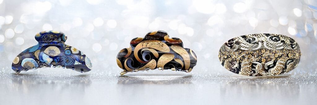 Nos inspirations naissent dans les rues de Paris, dans les galeries, les saisons, les matières. Chaque motif est soigneusement dessiné à la main, avec cette volonté de capturer une émotion, un éclat, un fragment de nature ou d’art abstrait. Nous utilisons de l’acétate de cellulose, une matière végétale aussi noble que durable, pour un rendu visuel profond et lumineux. Grâce à l’impression HD, chaque pince devient une toile miniature. Résultat ? Un accessoire en série limitée, à la fois audacieux et sophistiqué. Une création qui ne ressemble à aucune autre.