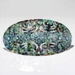 Dès le premier coup d’œil, cette barrette séduit par son motif nacré façon abalone, où des reflets verts, bleutés et rosés se mêlent aux strass cristal soigneusement incrustés. Une véritable pièce artistique, conçue en acétate de cellulose haut de gamme, un matériau biosourcé prisé dans les accessoires luxe pour sa solidité, son toucher doux et sa brillance naturelle.