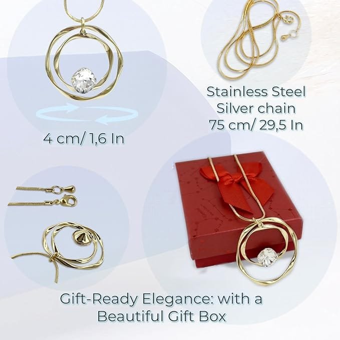 Élégant collier sautoir doré femme avec pendentif cercle ajouré et cristal scintillant. Acier inoxydable doré hypoallergénique. Longueur 75 cm. Livré dans une jolie boîte ClawMeUp.