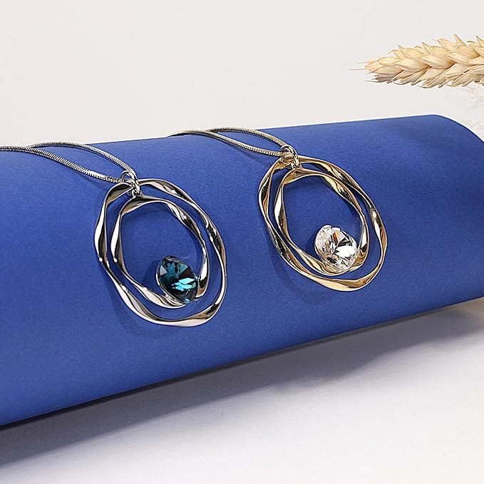 Le pendentif en cercle ajouré, aux lignes douces et organiques, apporte une touche artistique à votre tenue. Sa forme fluide donne du mouvement, tandis que la pierre cristalline, facettée avec soin, capte la lumière à chaque geste.
