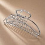 La pince à cheveux croissant métal s’est imposée comme l’une des pièces les plus photographiées de la saison sur les réseaux sociaux mode. Ce n’est pas un hasard : le motif croissant de lune réunit deux désirs simultanés — la douceur d’une forme naturelle et le tranchant d’un design graphique affirmé. Cette version grande taille de Dolvika pousse le concept à son maximum avec une finition métal brillante disponible en deux coloris : Or Brillant et Argent Brillant.