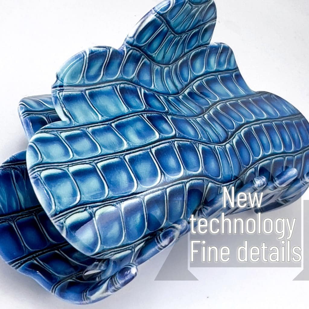 Une pince a cheveux bleue au design effet croco chic et intemporel.