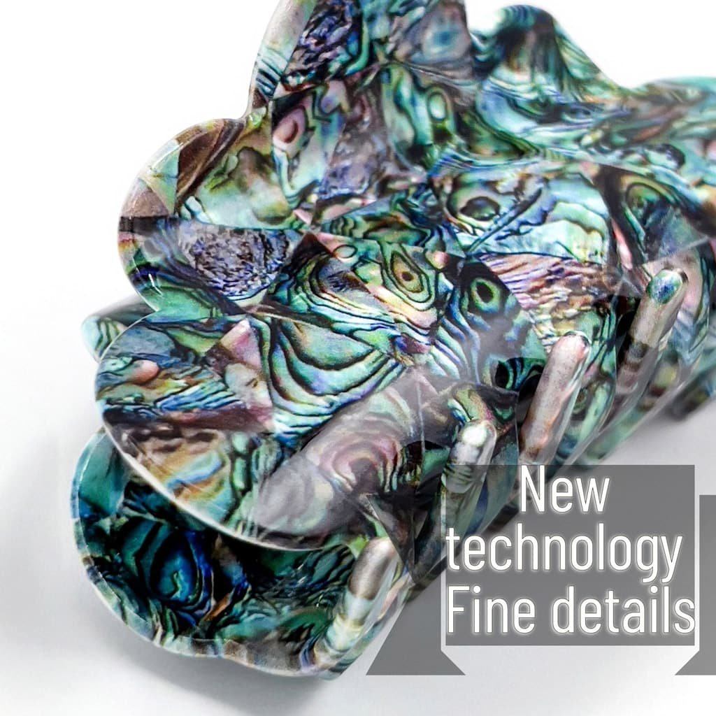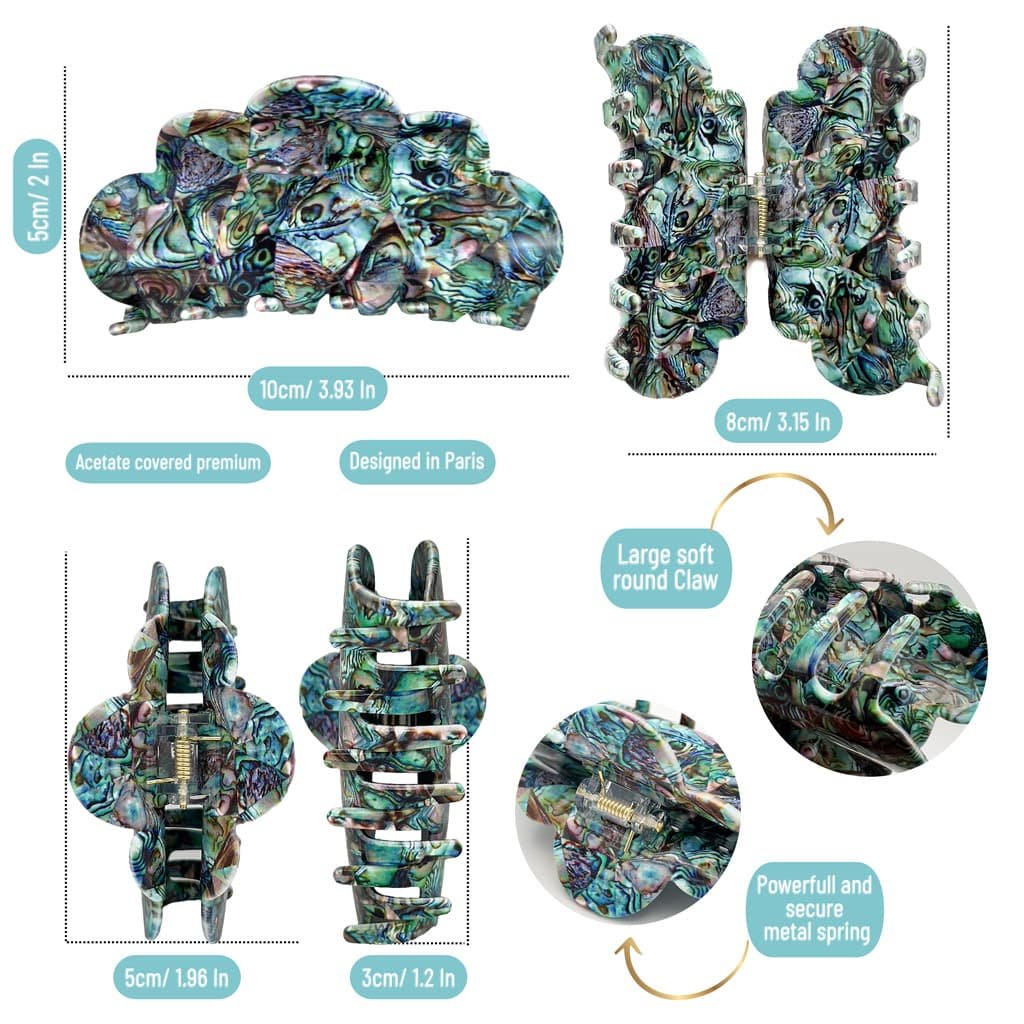 Inspirée par les profondeurs marines, cette pince à cheveux crabe arbore un motif nacré fascinant, où se mêlent des nuances d’azur, de vert et de perle irisée.