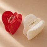 La pince à cheveux cœur est l’accessoire qui assume sa romantique sans complexe. Ce modèle Kalista reprend la forme universelle du cœur dans un format généreux — grande taille, silhouette immédiatement reconnaissable — et la décline en deux coloris pensés pour deux tempéraments différents : Blanc Nacré pour la romantique subtile, Rouge Fraise pour celle qui aime que ça se voie. Dans les deux cas, cette pince à cheveux cœur est une façon de mettre de la douceur dans une journée ordinaire.