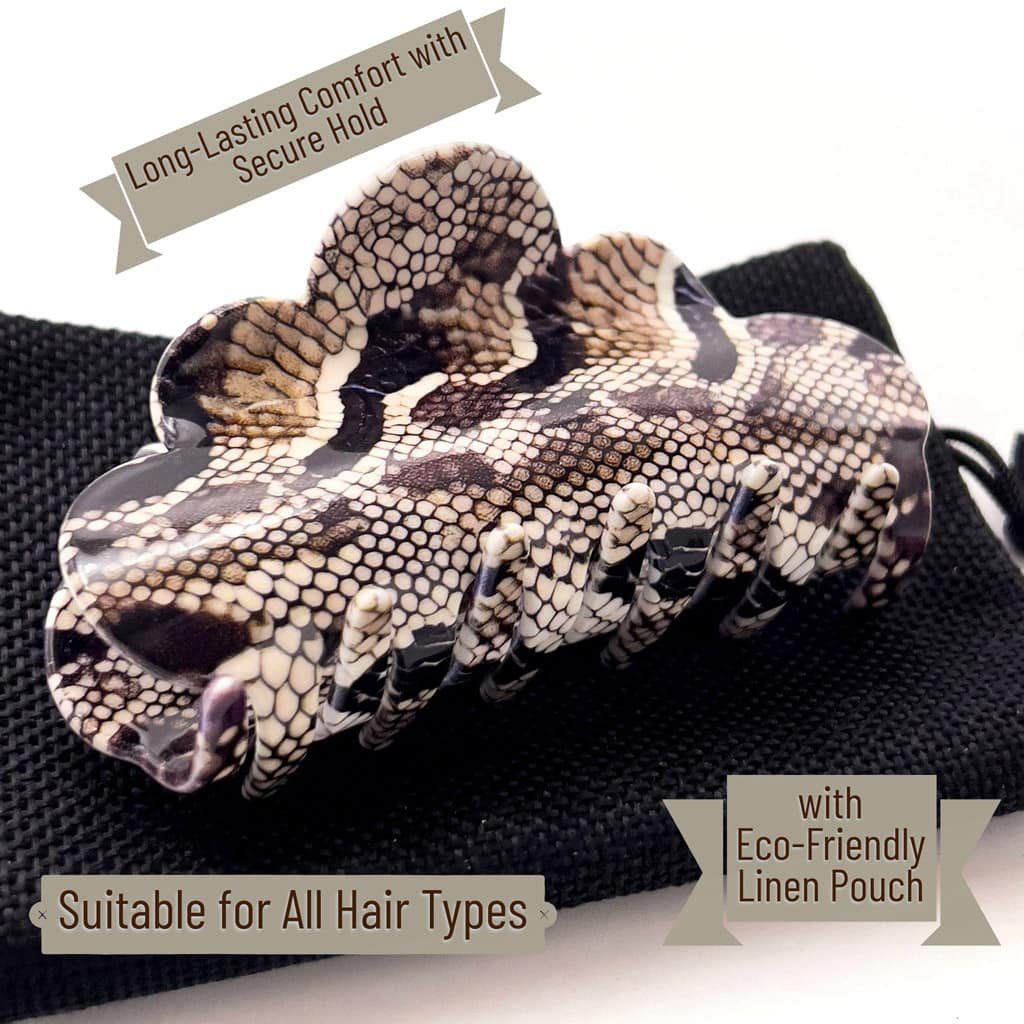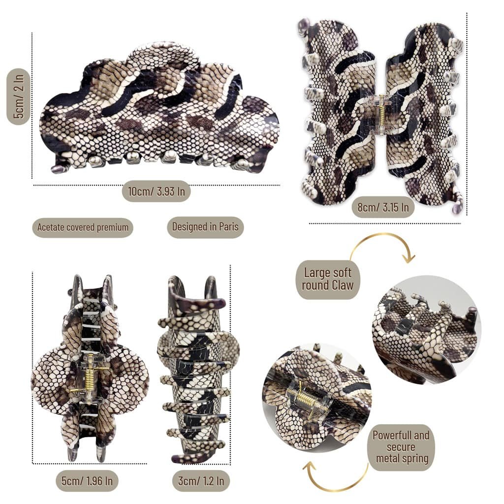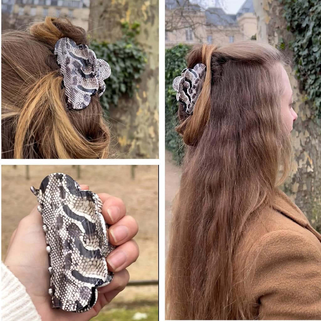 La pince cheveux motif python ClawMeUp Paris capture la beauté brute du serpent et la transforme en un accessoire d’exception.