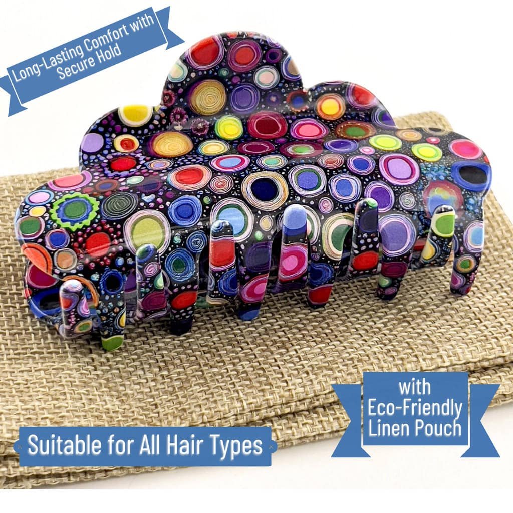 Fabriquée en acétate de cellulose premium, un matériau biosourcé issu du coton, cette pince clip cheveux offre une résistance exceptionnelle à la casse tout en respectant la fibre capillaire.